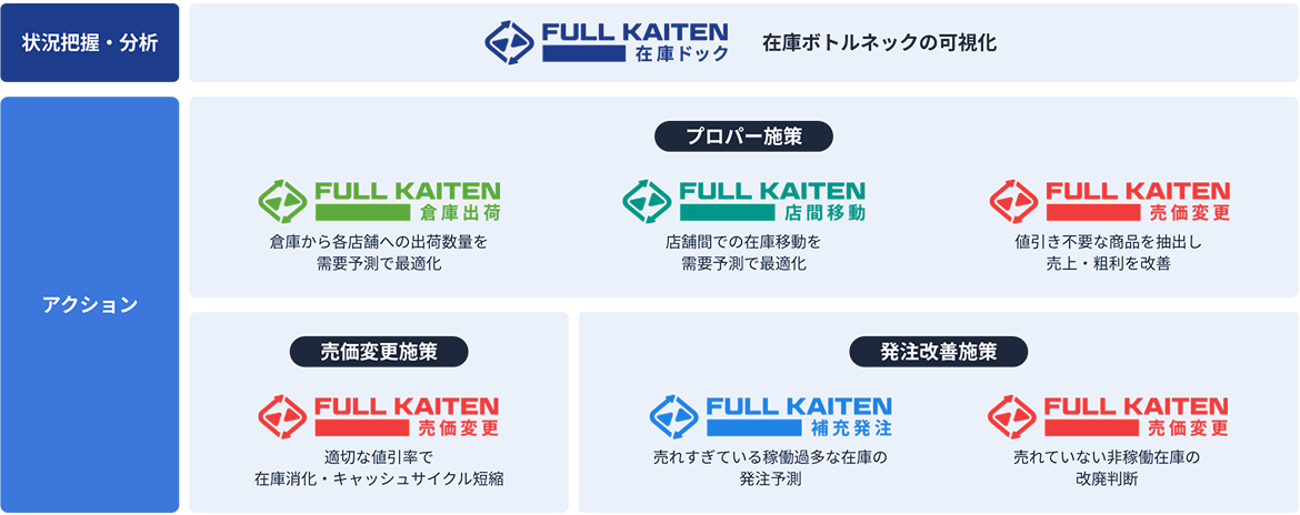 今どの商品に何のアクションを実施するべきかがわかるため、商品が売れる時期を逃さず、必要最低限の在庫で粗利最大化が可能に。