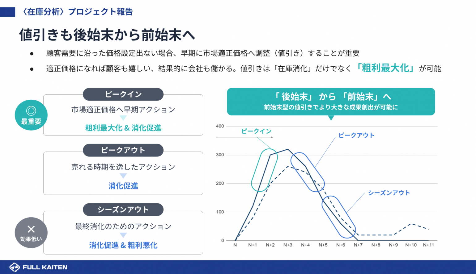 でも、FULL KAITENによって「需要のピークが来たとしても、今ある在庫数は消化しきれませんよ」という予測がはっきり出るので、そこはすごく分かりやすいですね。人力では、ピークインのタイミングでオフするという芸当は多分できないと思いますし。