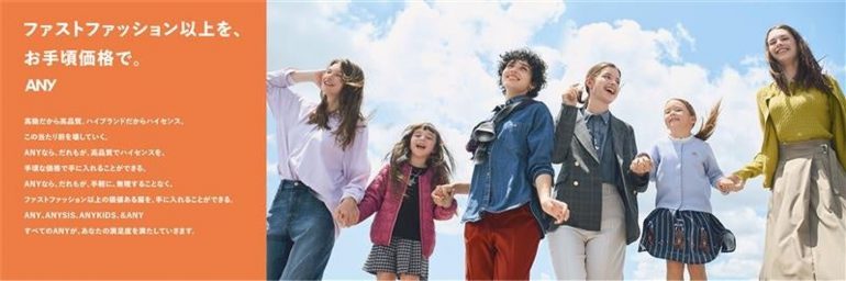 オンワードホールディングス傘下のオンワード樫山は2025年AW(秋冬)から新ブランド『ANY(エニィ)』の展開を始めます。コンセプトは「手の届く、高品質を、この価格で」というもので、オンワードグループの企画生産力を武器に、同社として最低価格帯で衣料品を提供します。販売チャネルはショッピングモールがメインとなり、ECでも取り扱います。