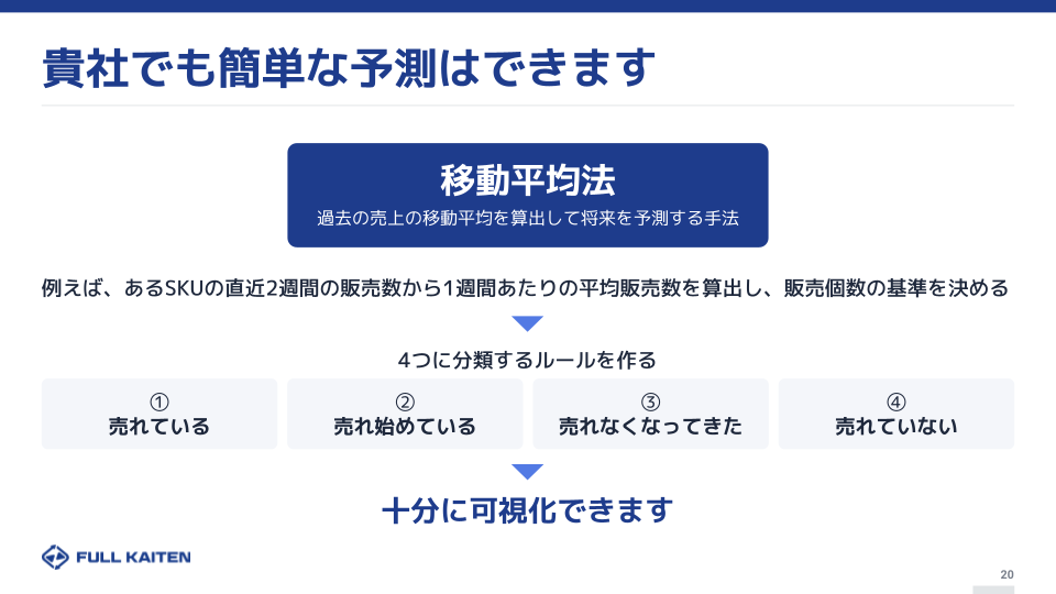 - 移動平均法を使うことで、2ステップで在庫分析が可能になる