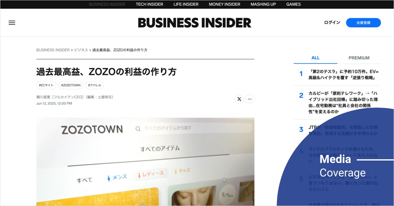 メディア掲載2025/6/13BUSINESS INSIDERに、ZOZOの特徴について分析した当社代表・瀬川の寄稿記事が掲載されました