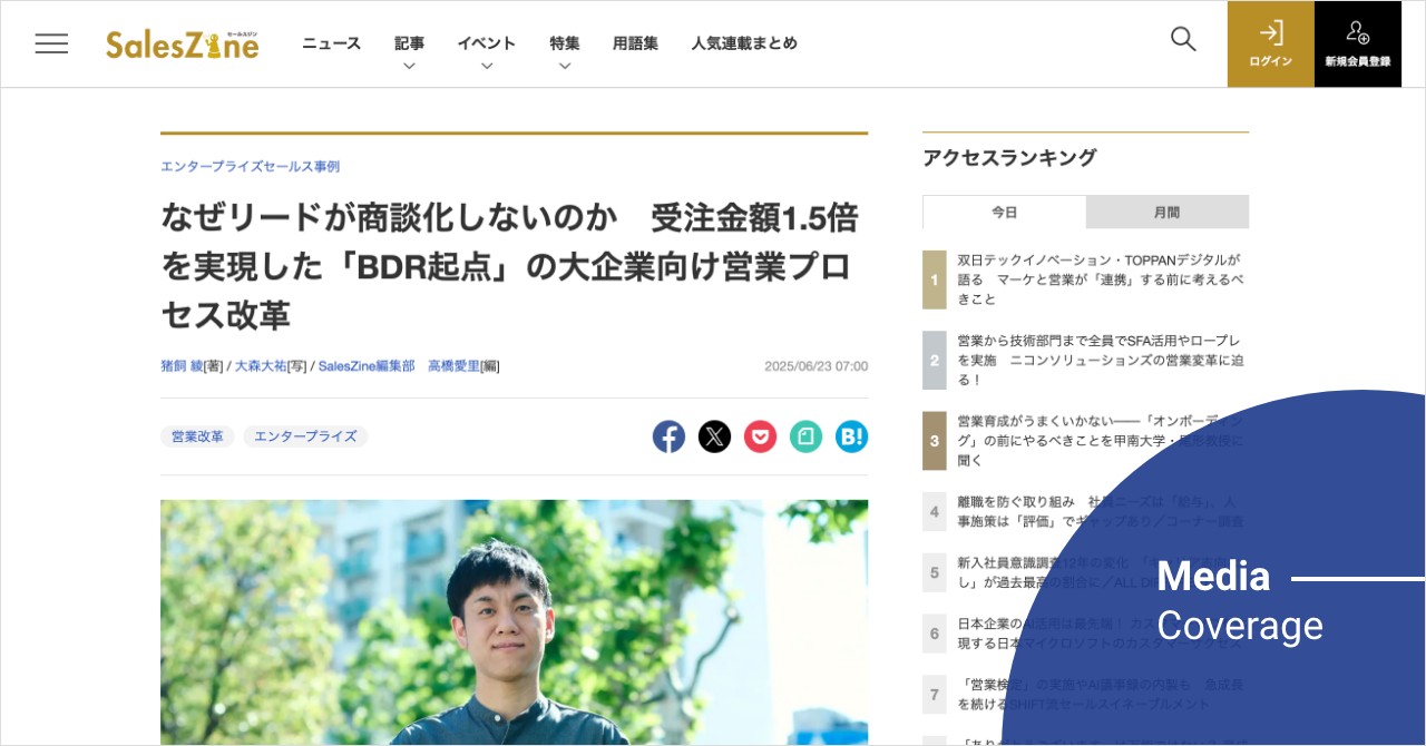 メディア掲載2025/6/23SalesZineに当社執行役員CMO岸良のインタビュー記事が掲載されました