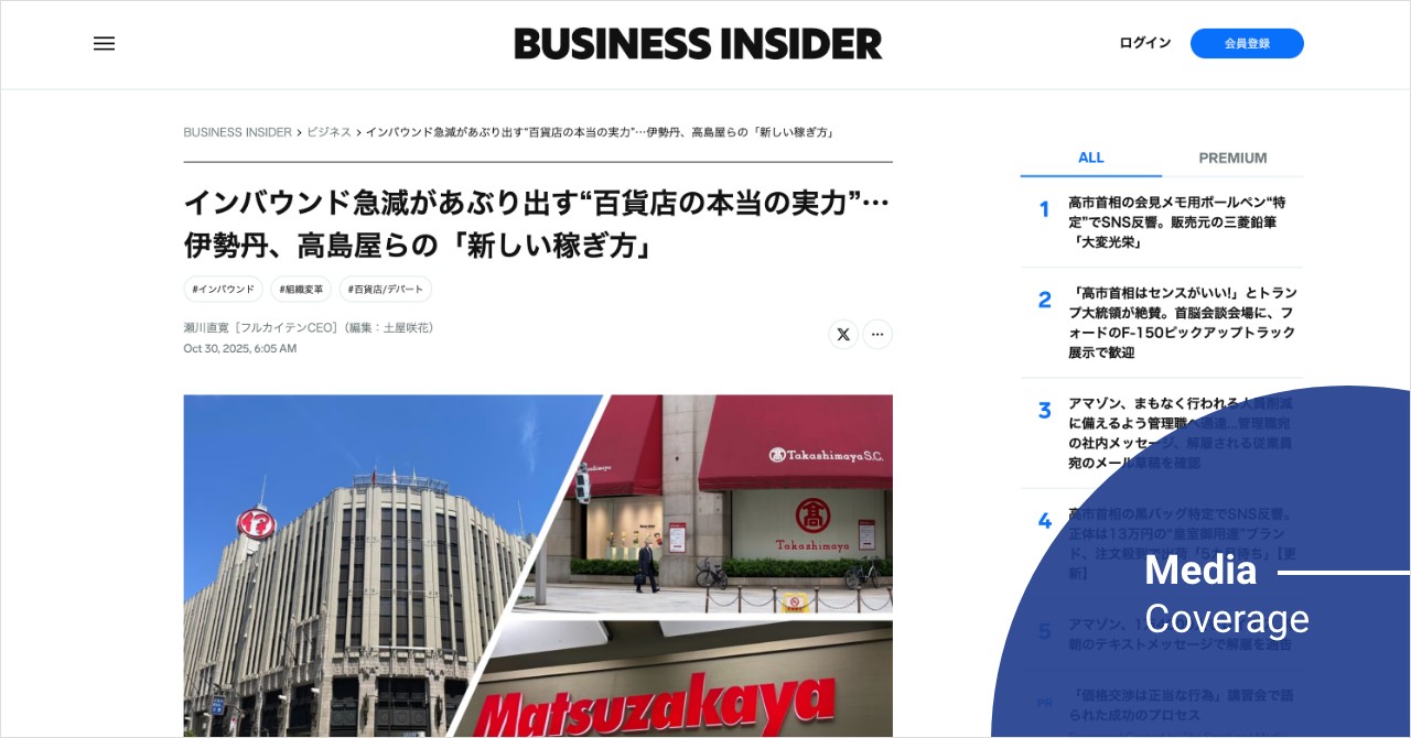 BUSINESS INSIDERに、百貨店業界とインバウンド需要減少について分析した当社代表・瀬川の寄稿記事が掲載されました