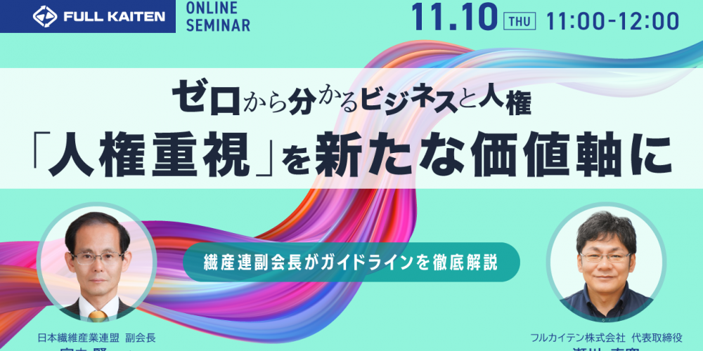本ウェビナーでは、いち早く繊維産業向け人権ガイドラインを策定した日本繊維産業連盟の富吉賢一副会長を講師に招き、アパレルをはじめとした繊維関連企業が取るべき対応策について詳説します。人権対応を「やって当たり前」の経営方針として捉えることで、新たな価値を生み、事業を差別化するための新たな針路が見えてくること間違いなしです!