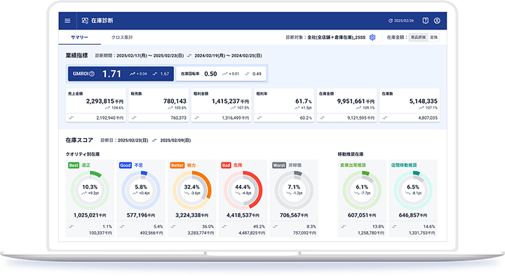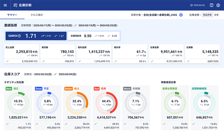 小売企業が見るべき業績指標と在庫リスクを一覧表示。